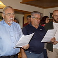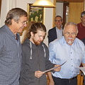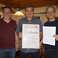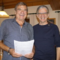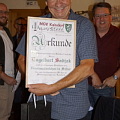 Eine Woche nach seinem Geburtstag feierte Engelbert Sadjak am 7. Oktober seinen 70er mit den Chören im Buschenschank Gruber. Nach einen Begrüßungsgetränk gab es ein Ständchen von beiden Chören und das Vereinsabzeichen in Silber vom MGV für besondere Verdienste um den Verein. |